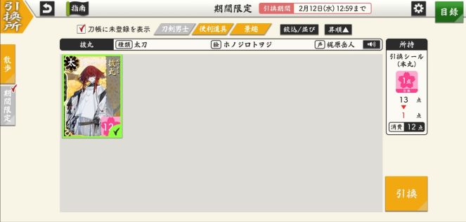 Additionally, I had points to use! (I always forget that I have them…) Because Nukemaru was the only unobtained sword boy, I got him with those points. 😊